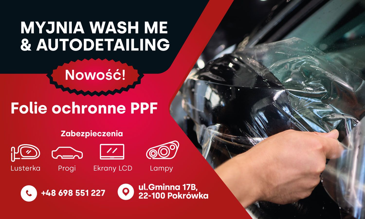 Oferujemy profesjonalne oklejanie aut bezbarwną folią PPF, która chroni lakier i zachowuje oryginalny wygląd pojazdu.